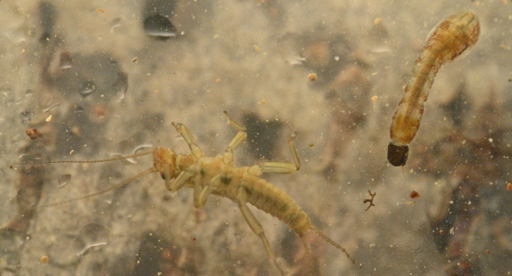 lotsd of these larvae were on the stones and swinging in the current