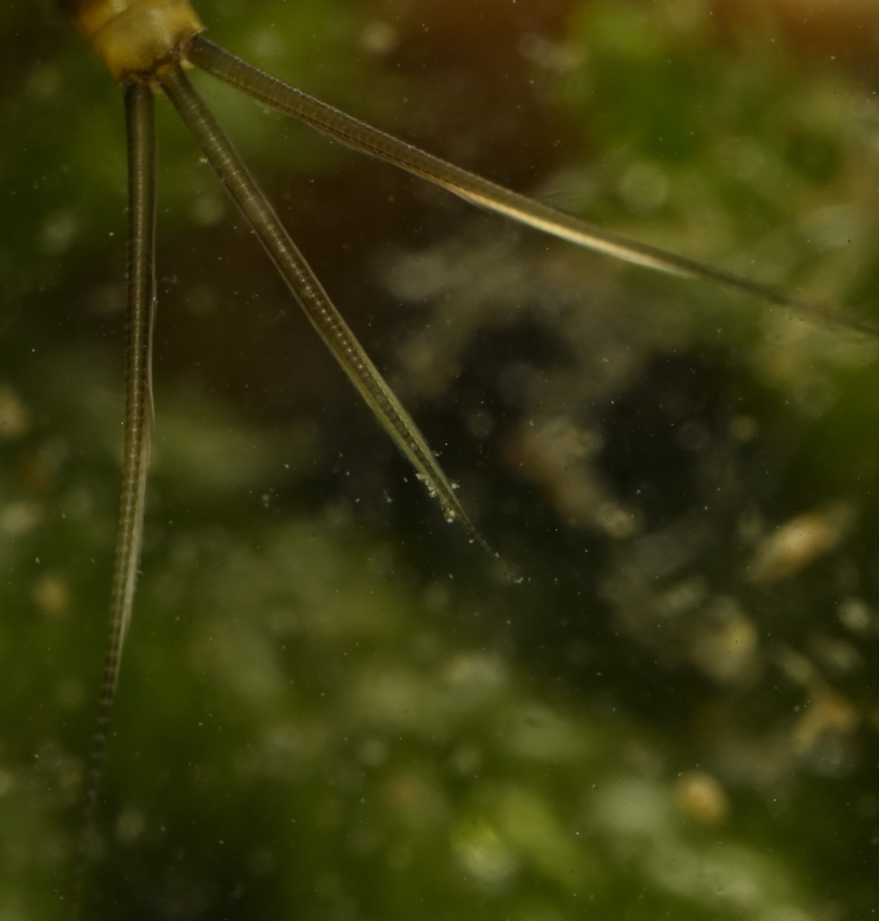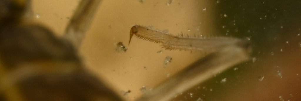 Femora brownish with a pale spot, posterior margin of femora with 8 to 12 pointed bristols.