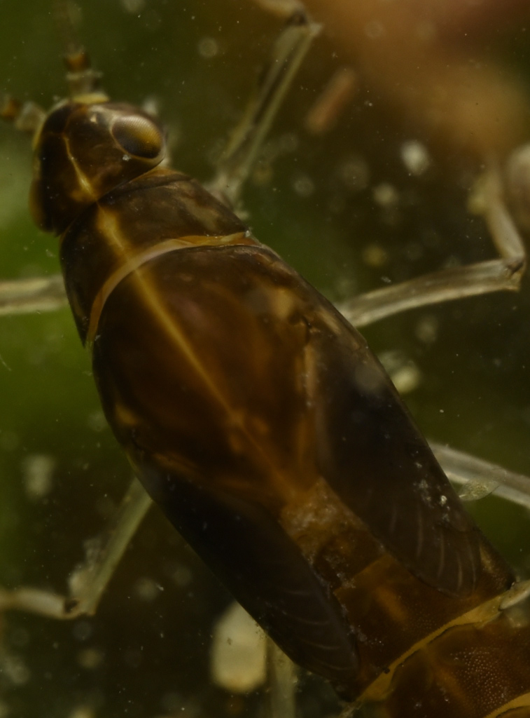 Pronotum dark brown/blackish with a mediolongitudinal band.