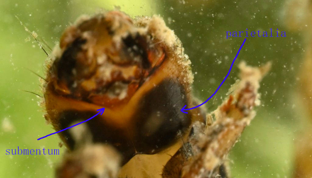 Triangular submentum and ventral parietalia completely dark