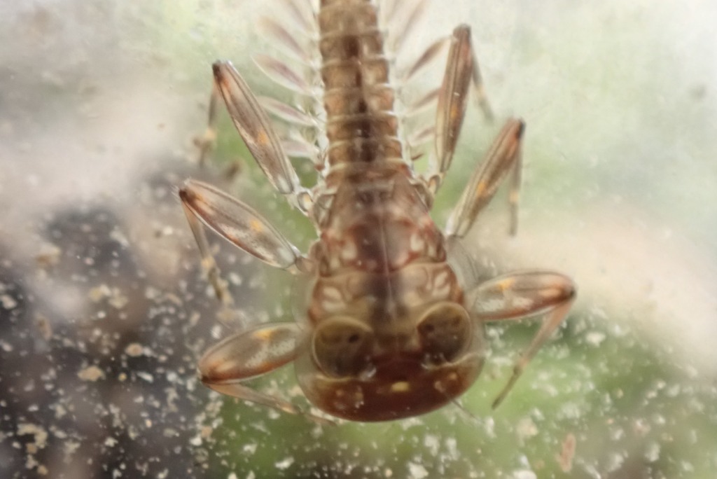 A juvenile nymph of Ecdyonurus, body length about 6 mm. The shape of the pronotum (see last picture at the bottom) could identify it as Ecdyonurus austriacus.