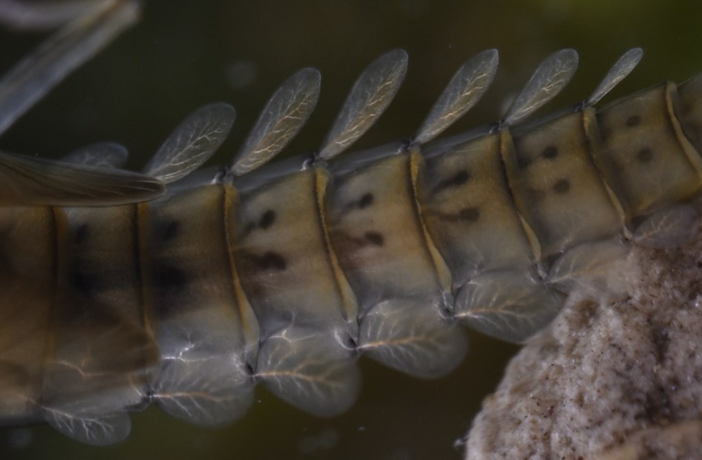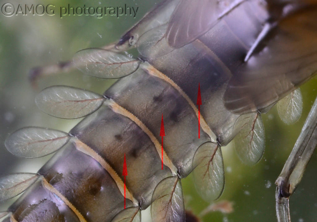 In the anterior part of the terga two dark dots and streaks fuse to form a U-shaped pattern.