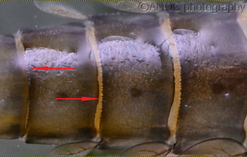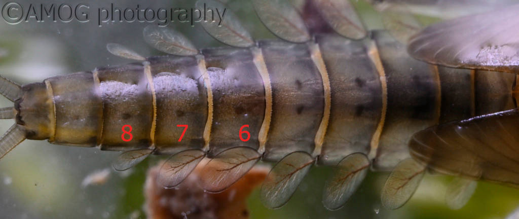 Terga 6 to 8 darker than terga 1-5 and 9-10.