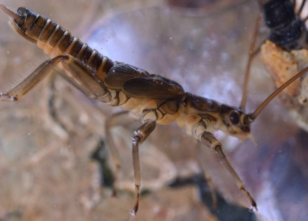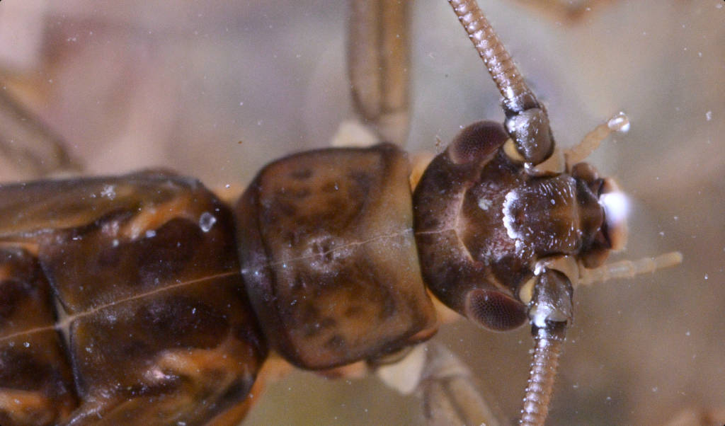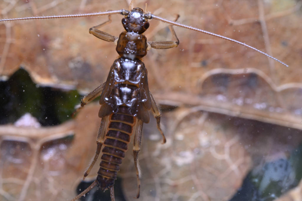 Quite abundant in this part of the stream, some of the nymphs were fully grown. The one in the picture is a male (apex of paraproct bent)