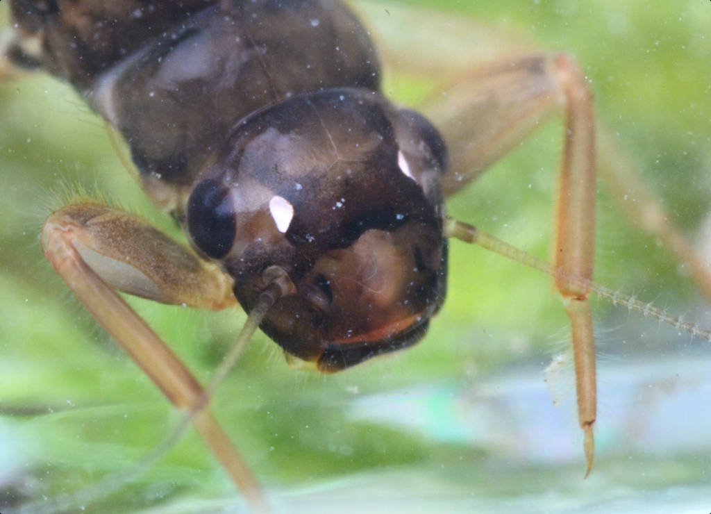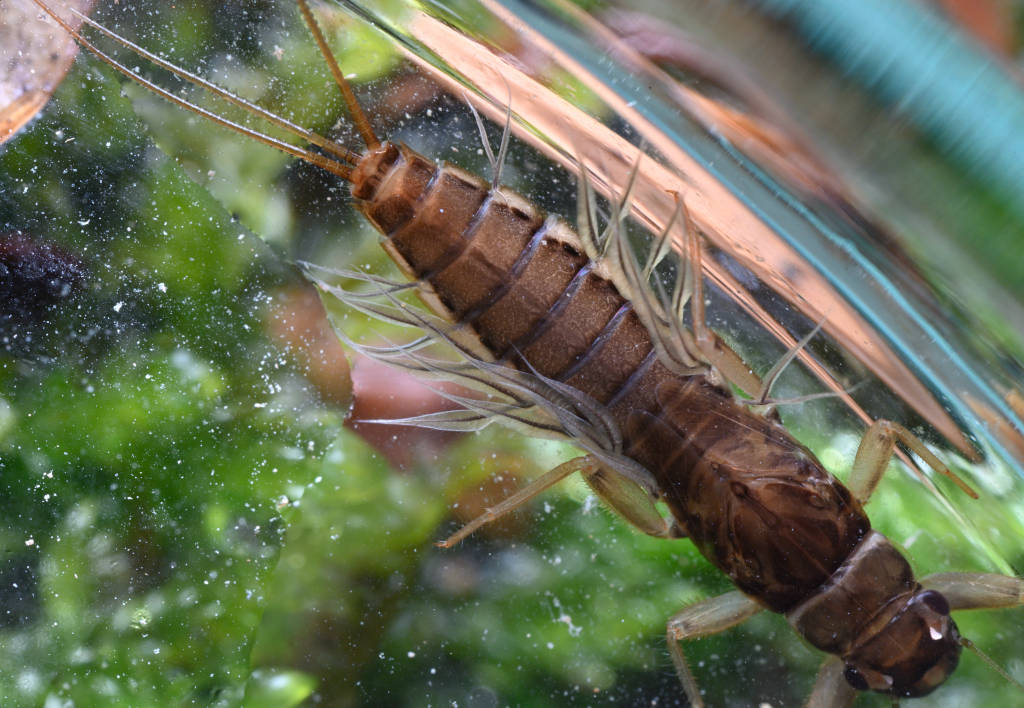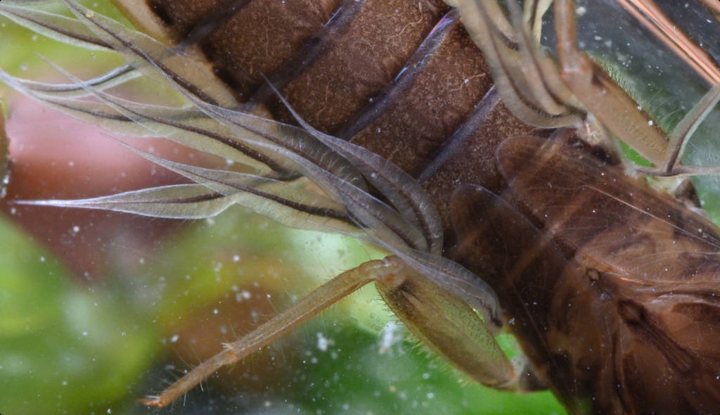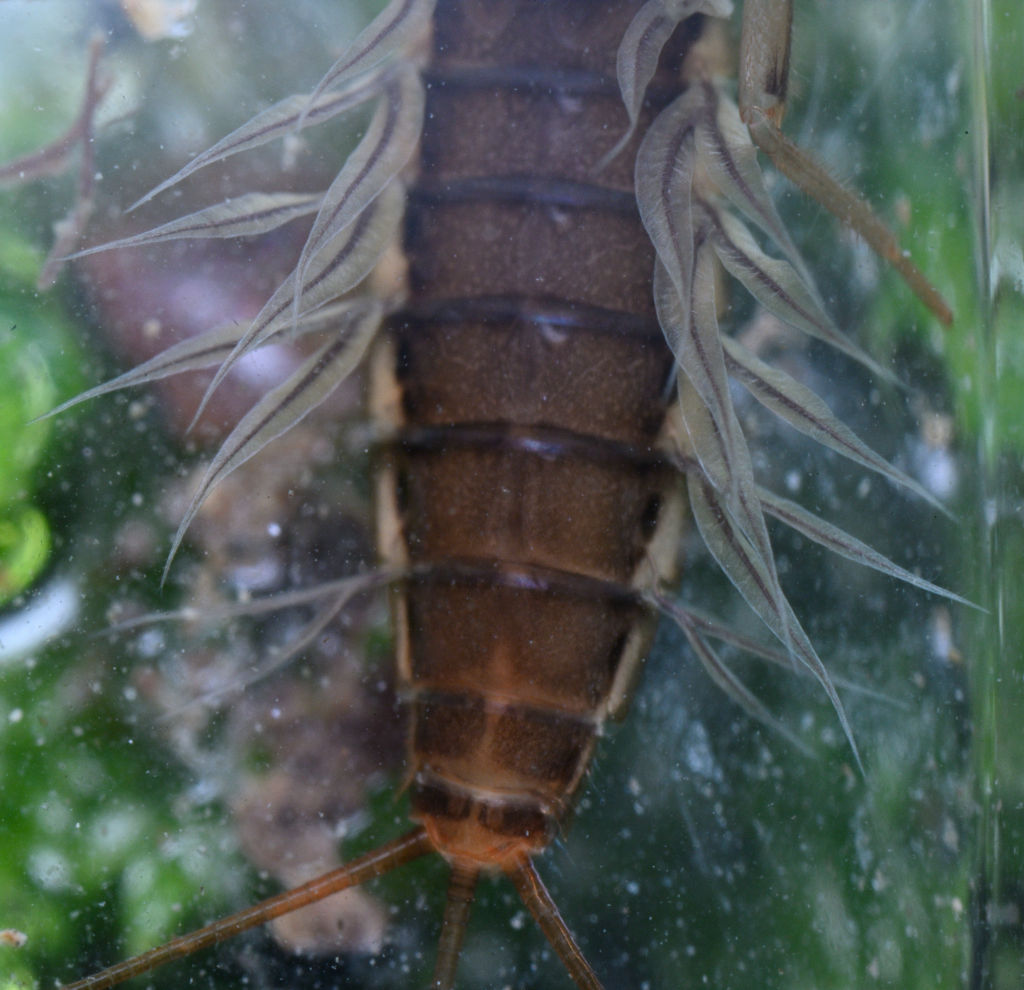 Keys: this nymph's body was 12 mm long. The gills are slender and bifurcated, gill 1 not particlarly shorter than gill 2