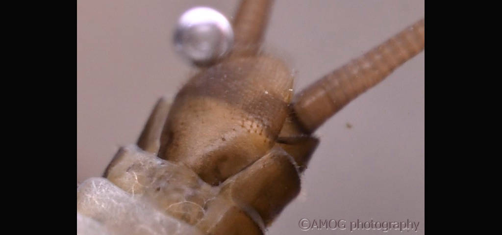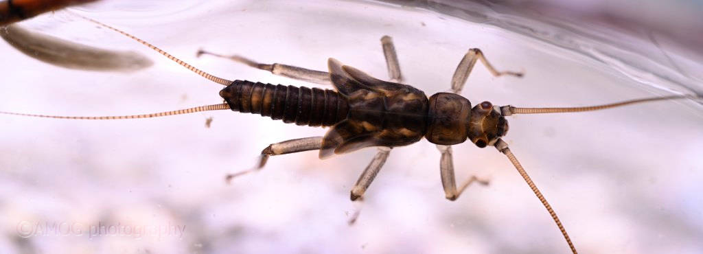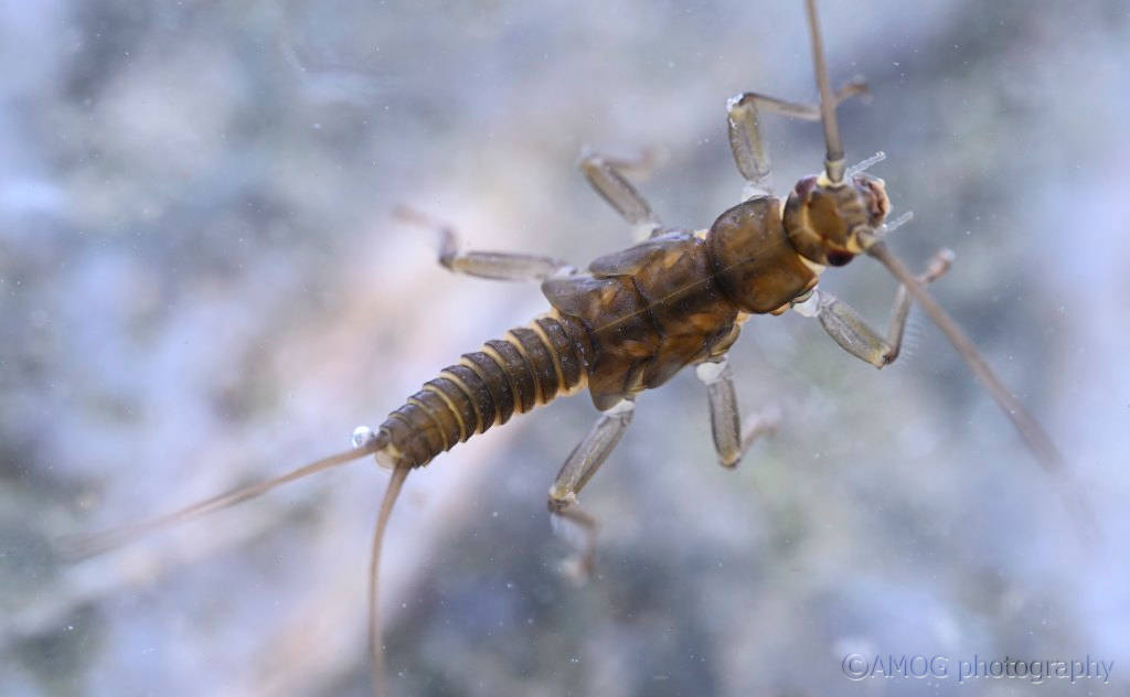 I found 3 specimens all under a rock in a strong current. In the pictures: the dark larva with bent epiprocts is a male.