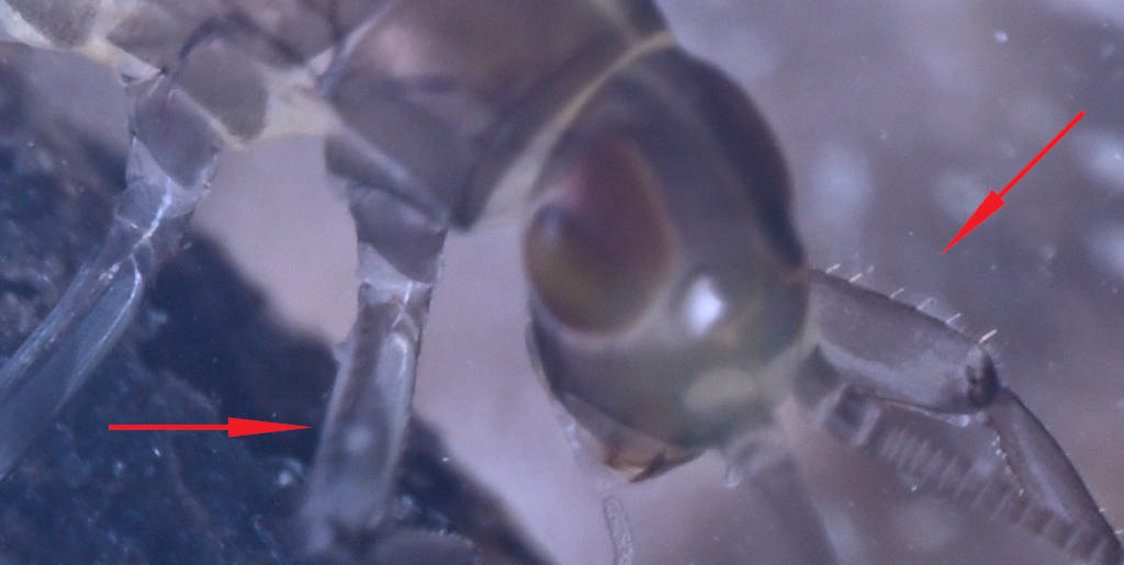 Femora brownish with a pale spot, posterior margin of femora with 8 to 12 pointed bristols.