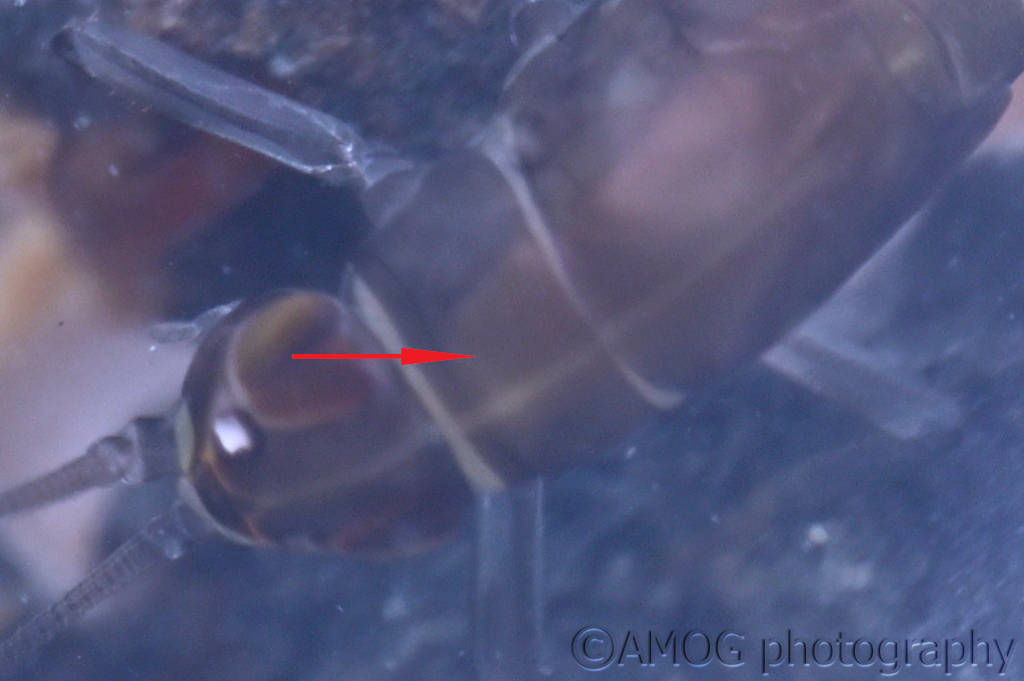 Pronotum dark brown/blackish with a mediolongitudinal band.