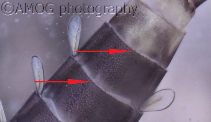 Posteriormargin of terga with triangular pointed spines, intercalated with very small spines.