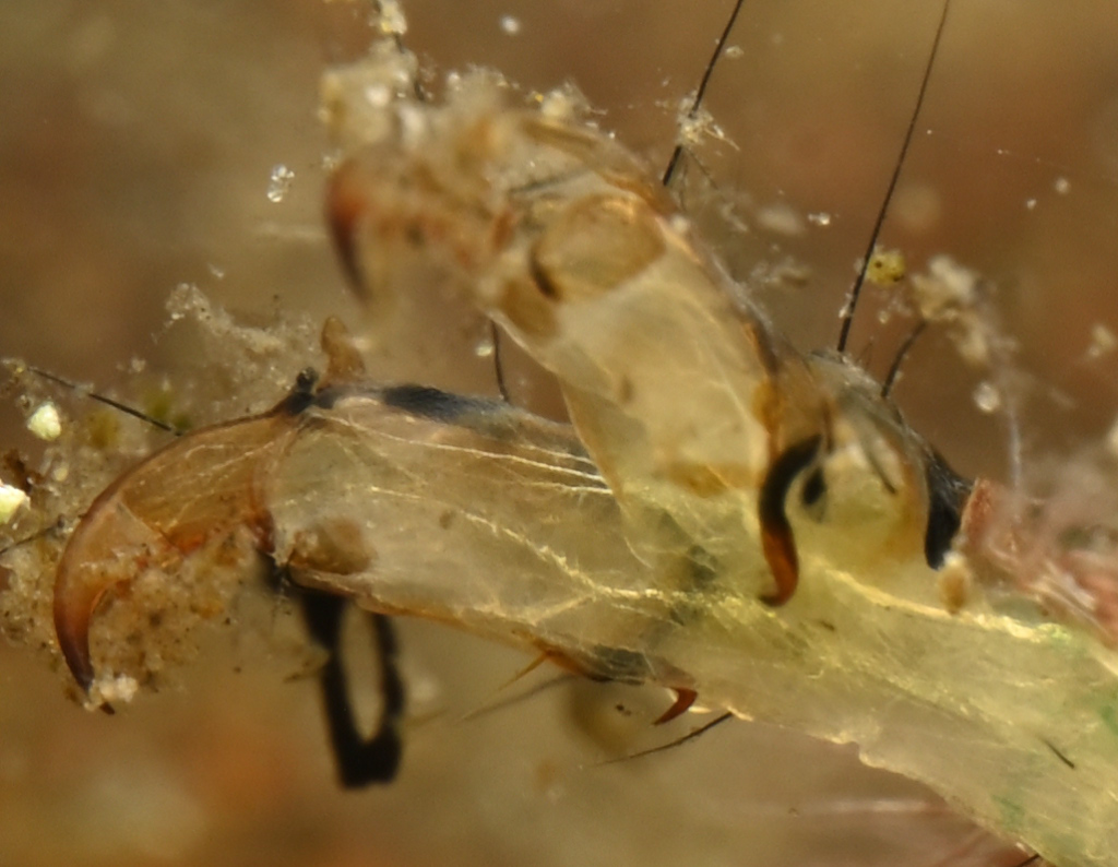I found 5 specimens of this Rhyacophila, which seemed to be quite common in the slower flowing part of the stream.