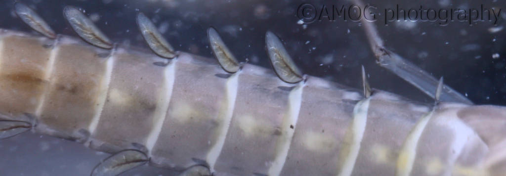 Posteriormargin of terga with triangular pointed spines, intercalated with very small spines.