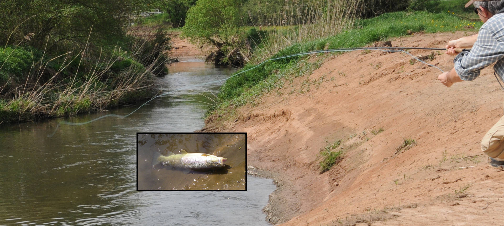 The wind blows some of the black flies into the water. Some re-gain airborn after few efforts, others remain trapped in the surface film. After mounting a passable imitation I catch 3 nice brown trout in a row. They all have the distinct signs of recently entered stocked fish. I then move downstream, trying to find out how the fall of Hawthorn is affecting the wild fish.