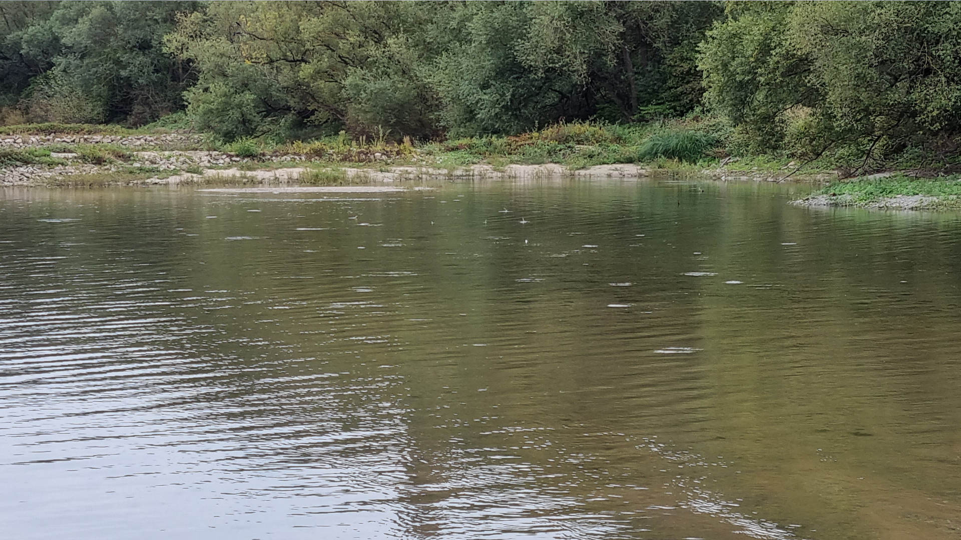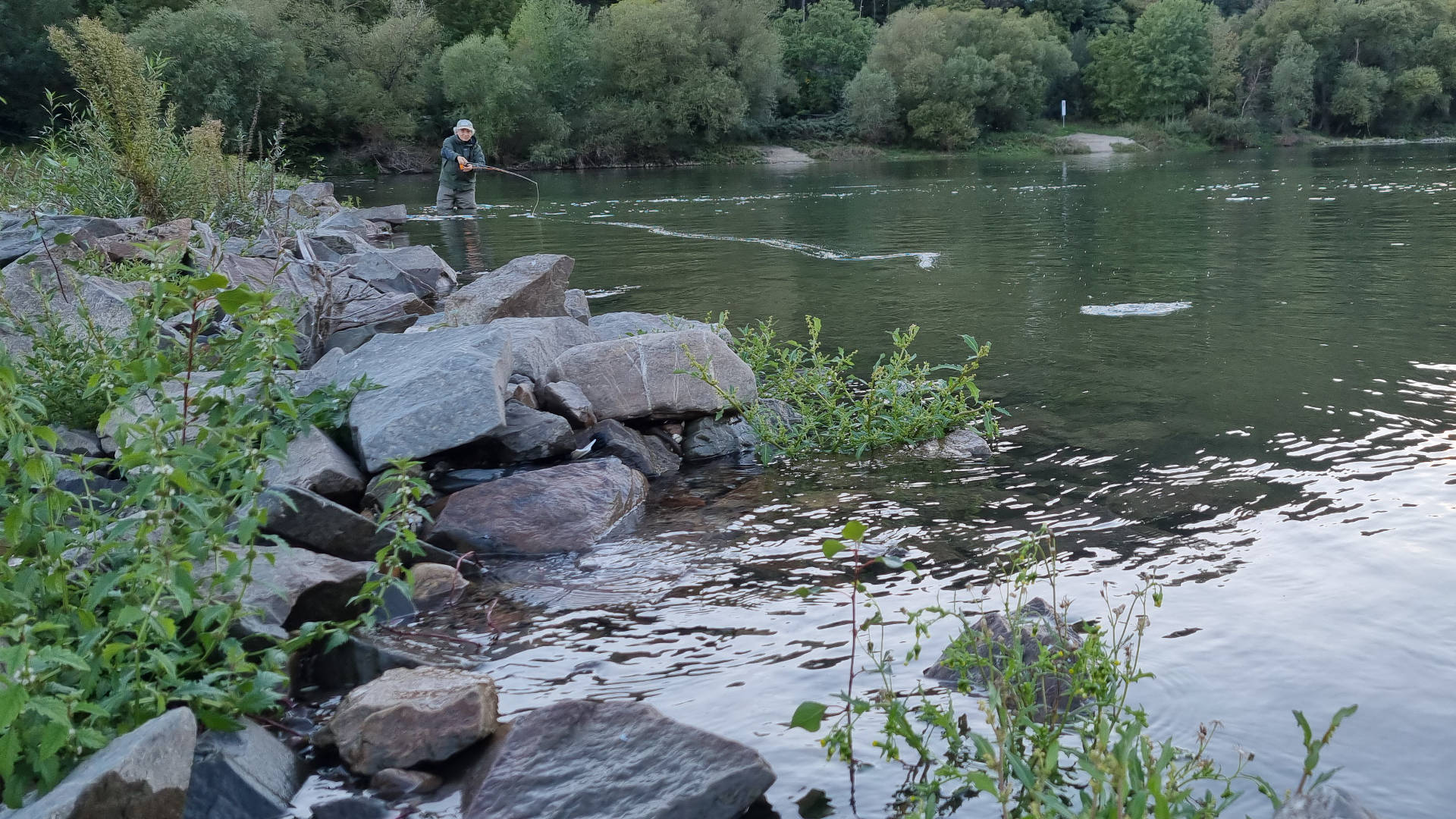 The drought in summer was terrible. Luckily last week the rain has improved things. Today the weather is good, however the surface is dotted with 'drops'. Thousand fry are feeding on surface midges. The perfect time and place to test the new streamers I had tied. I have no whatsoever expectation in term of catches. I just want to cast these tuna streamers before taking them with me on my next trip. Living far from the sea, the large river offers good conditions: the moderate waves originated by the ships cruising by and an unpredictable mix of currents.