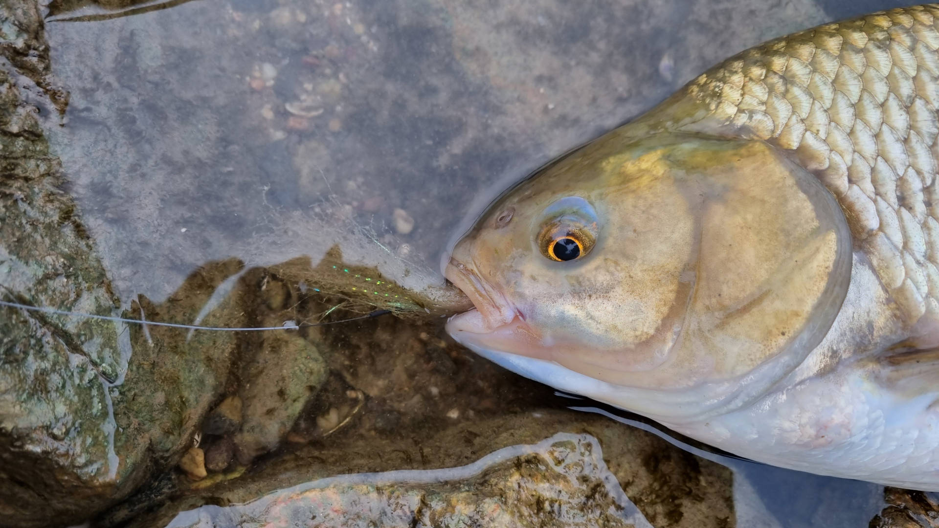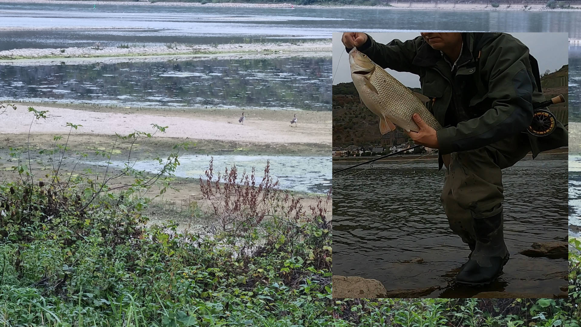 I got in the middle of a school of big ide (Leuciscus idus). Not great fighters, but in 2 to 3 kg. size always a pleasure and. This fish feed mostly on benthos, insects and snails. It becomes piscivor when growing in size. It lives in very large rivers and it is found in brackish water too. It is the first time that catch a ide. According to some sources Ide are caught mostly and small nymphs and dry flies.