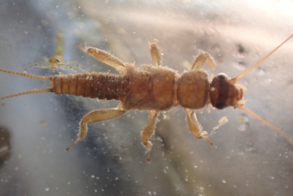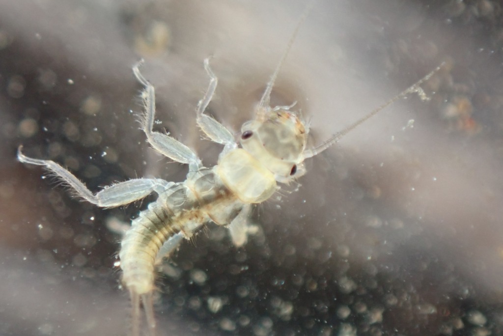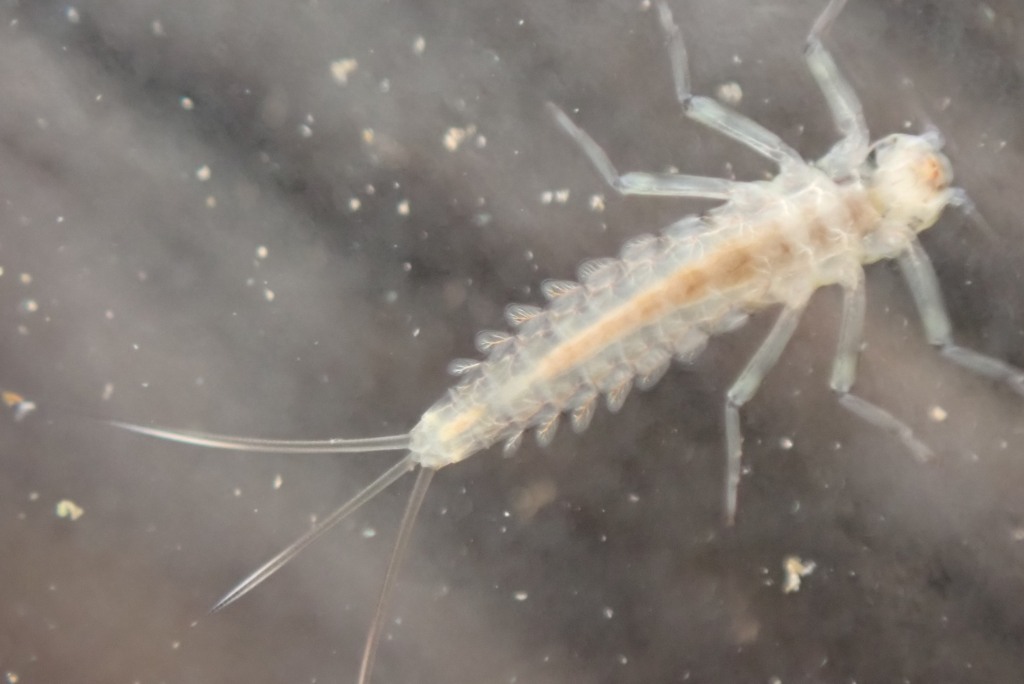 I executed this further sampling about 1,5 km downstream. I found additional benthic macrofauna. Protonemura was still present but in less amount than upstream. Caddis were present too.