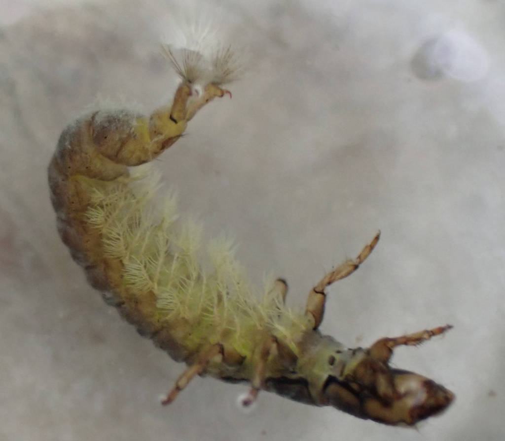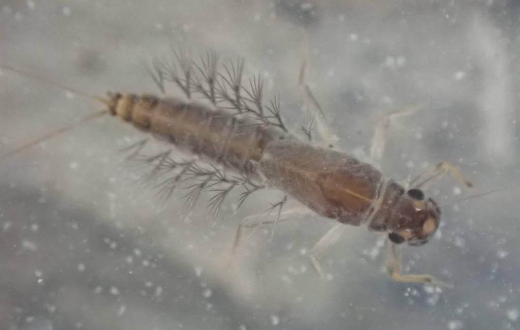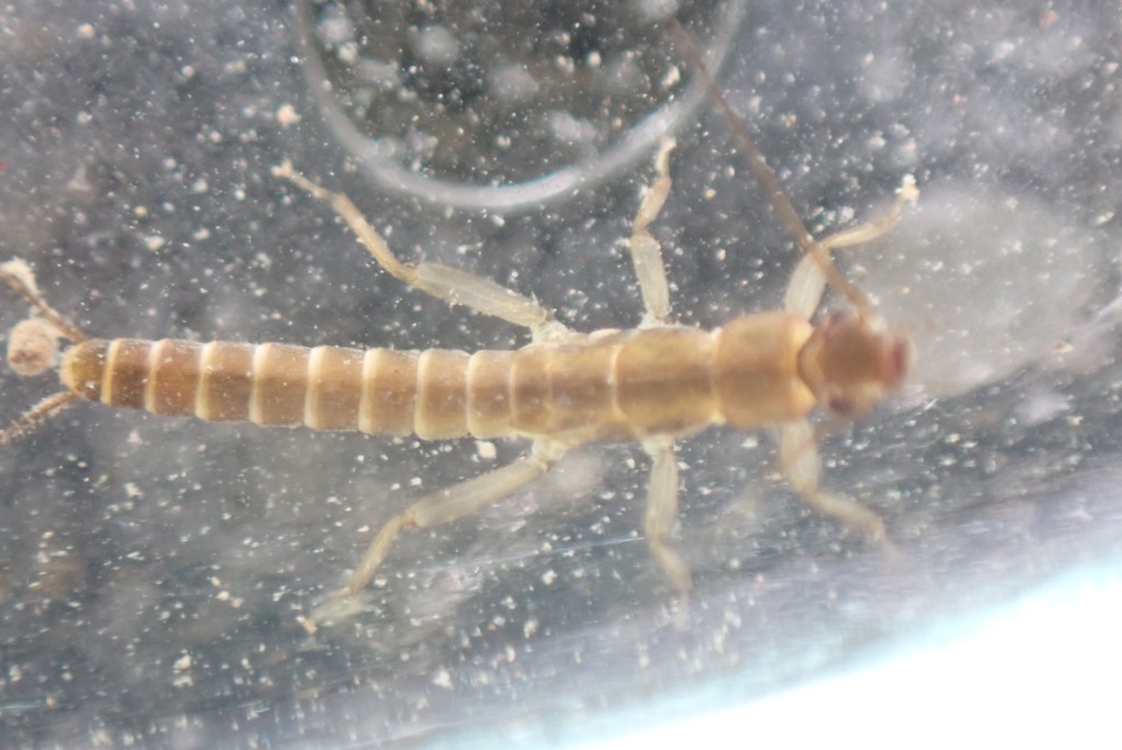 This sample was taken upstream of a sewage treatment plant. The brook is here a tiny line running through a meadown. Similarly to the larger strecth downstream of the plant the water was murky. Considering the relative high water temperature, I found a good presence of macrobenthos and bio-diversity.
