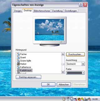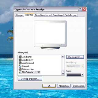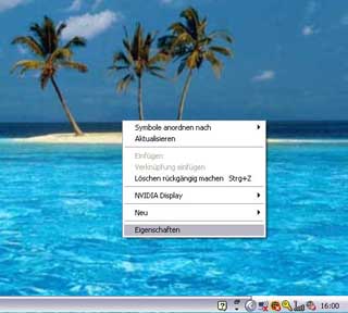 2) With the mouse right click on your desktop and select "Properties" (German: Eigenschften, Italian: