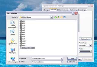 4)Go under the directory where you have copied and unzipped the files, select EFACalendar1.html and click Open (Öffnen)